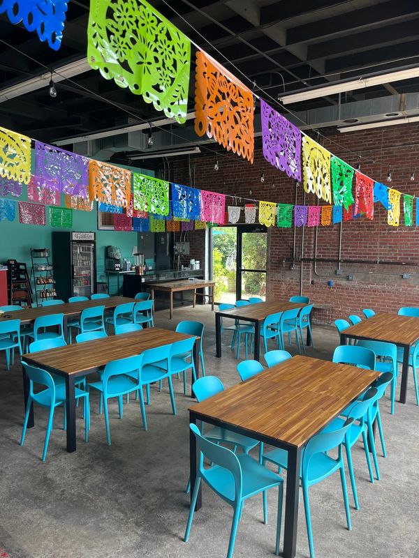 This space offers an industrial backdrop with seating as well as standing room, and a garage door for an open-air experience if desired. Perfect for 75 people or less